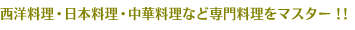 基礎を卒業された方や、もっと深く料理を研究したい方のためのクラスです。おもてなし料理やプロの味を学びます。西洋料理・日本料理・中華料理など学びたい分野のみのセレクトも可能です。男性の方もOKです。
